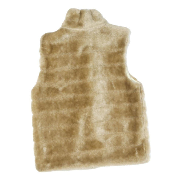 Womens Beige Faux Fur Button Jacket M Polyester Blend Plain Soft Stylish Warm