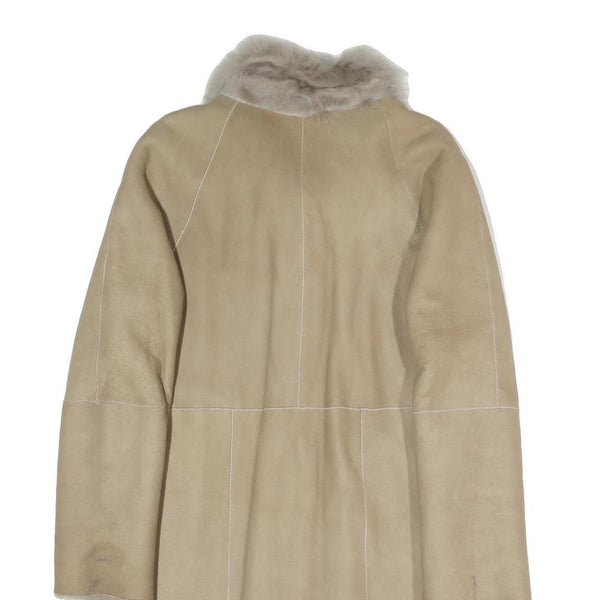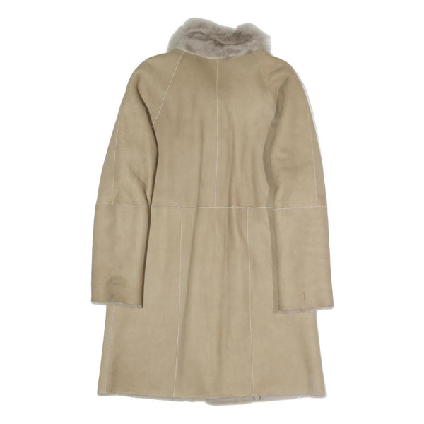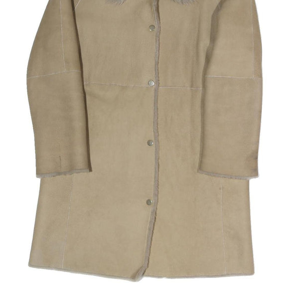 Womens Beige Faux Shearling Button Jacket S Polyester Blend Warm Stylish