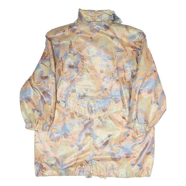 Womens Beige Geometric Pattern Zip Jacket M Polyester Blend Relaxed Fit Retro