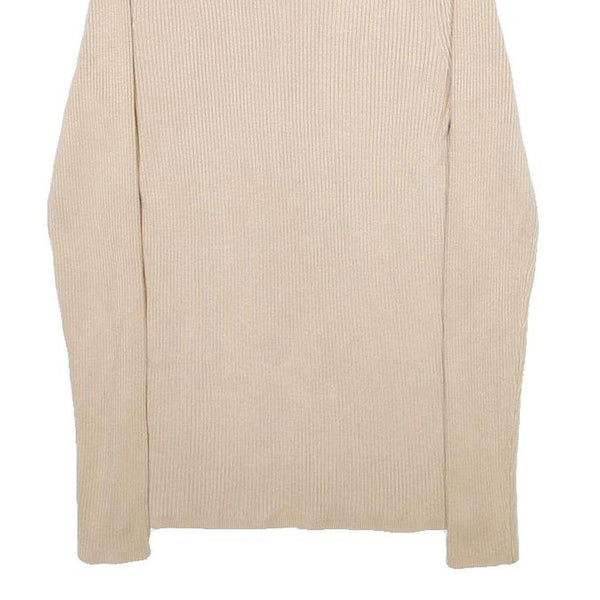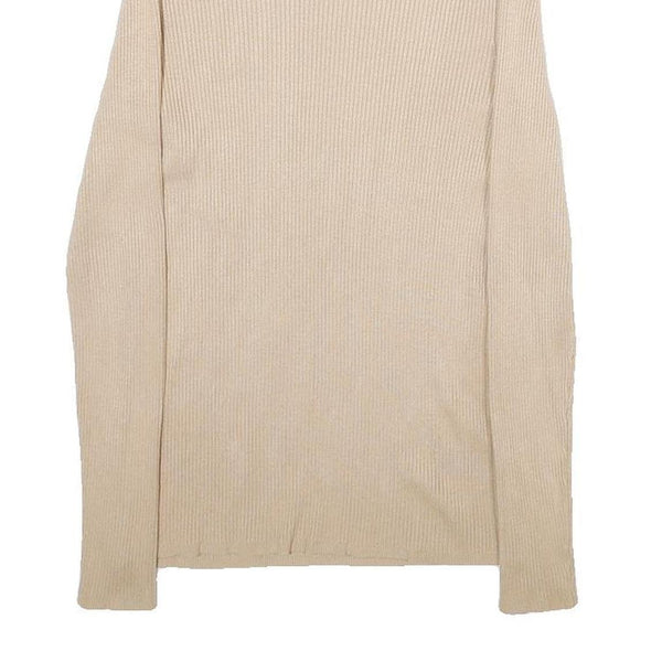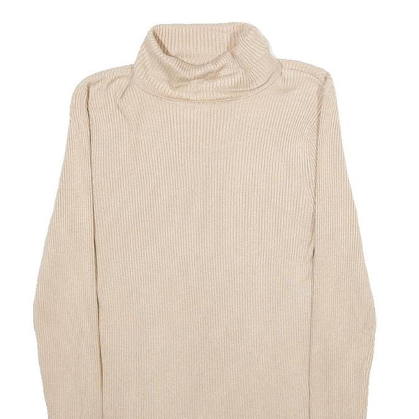 Womens beige plain high neck basic knit jumper xs soft lightweight stylish