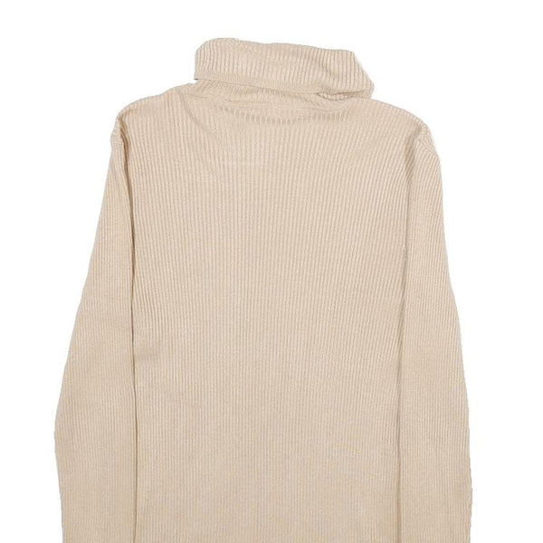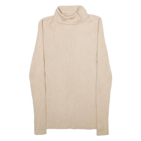 Womens Beige Plain High Neck Basic Knit Jumper XS Soft Lightweight Stylish