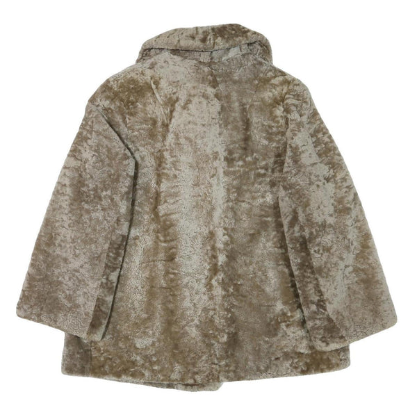 Womens Beige Polyester Blend Faux Fur Coat L Jacket Button Closure Plush