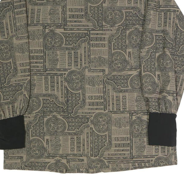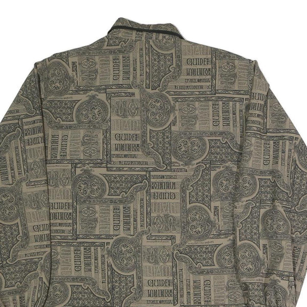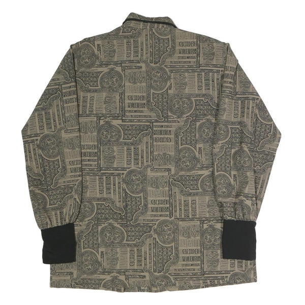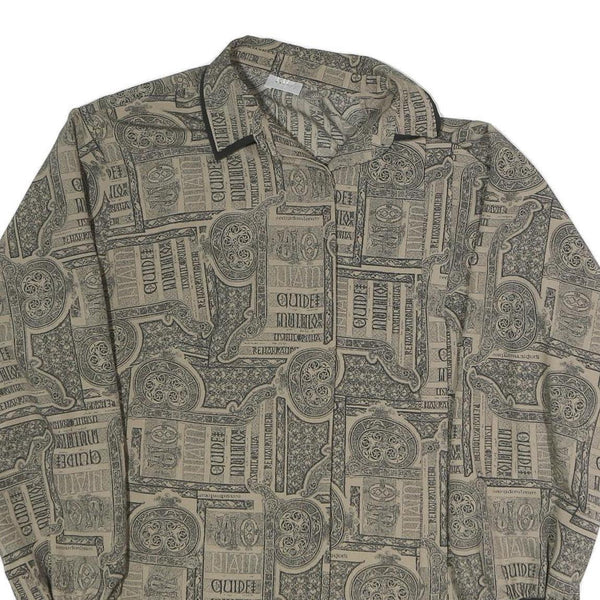 Womens Beige Printed Shirt Long Sleeve Collared L Stylish Patterned Top
