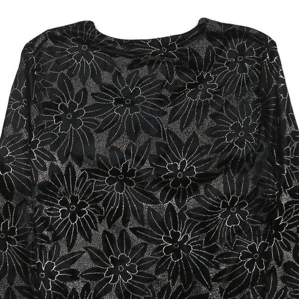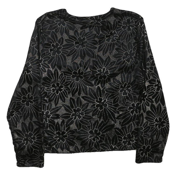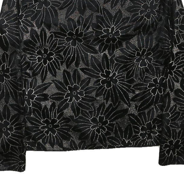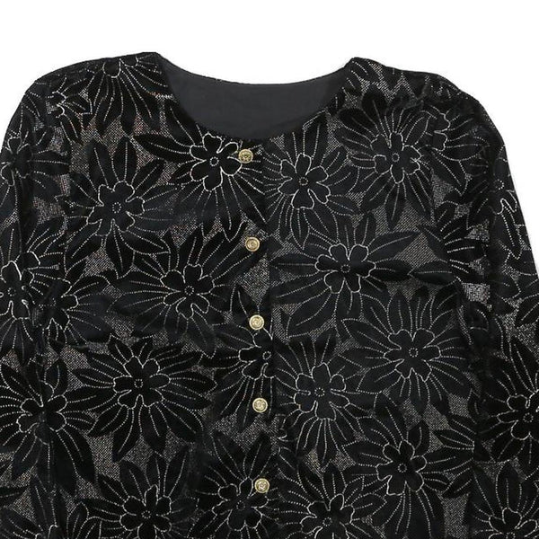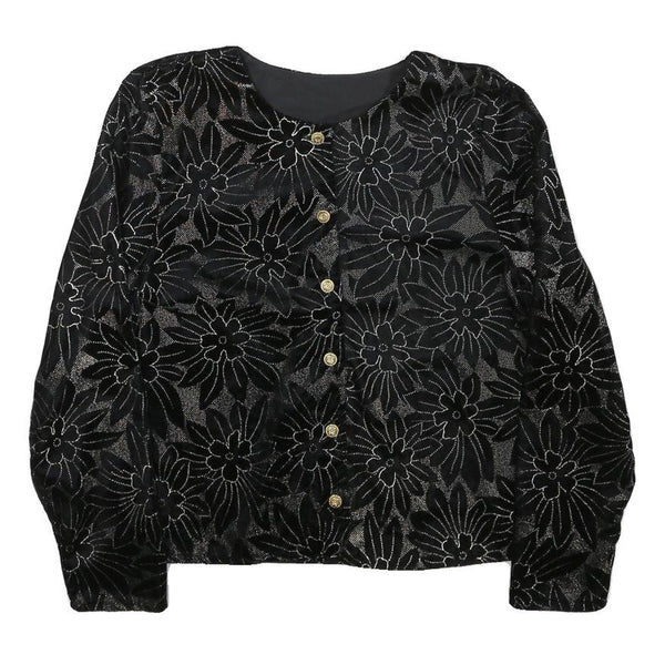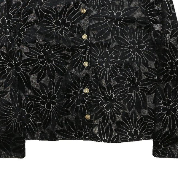 Womens Black Floral Pattern Button Jacket XS Polyester Blend Stylish Lightweight