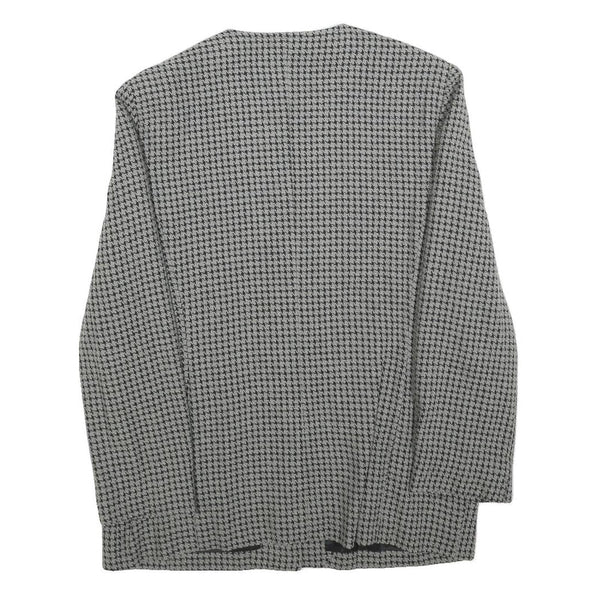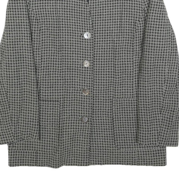 Womens Black & Grey Classic Button Jacket M Woven Houndstooth Pattern