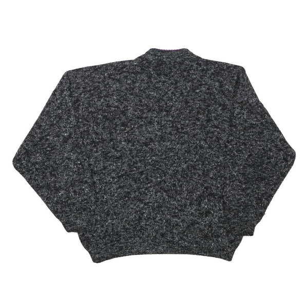 Womens Black Grey & Purple Wool Blend Patterned Jumpers Crew Neck Basic Knit M