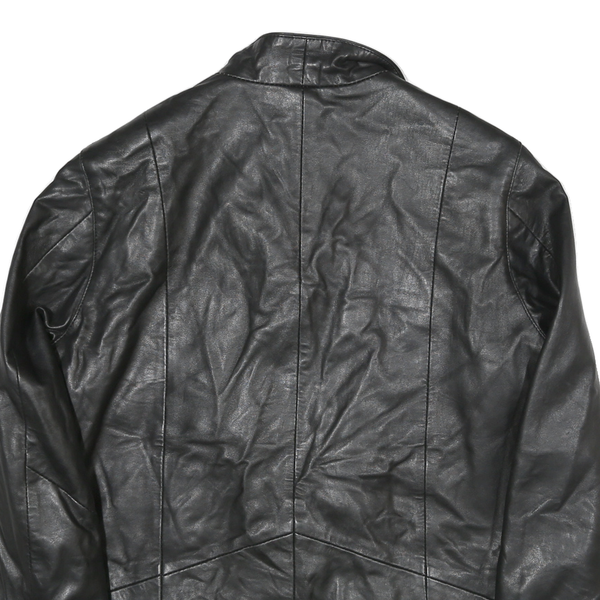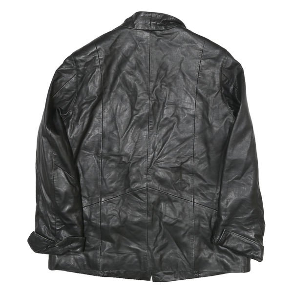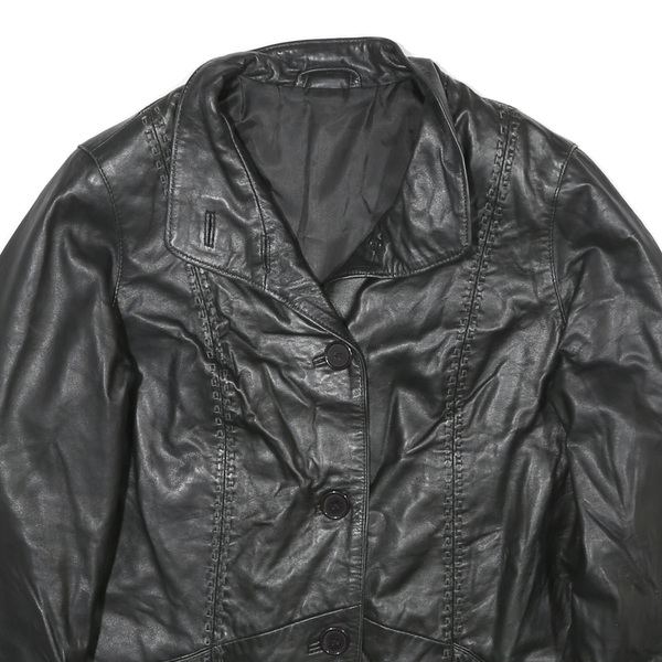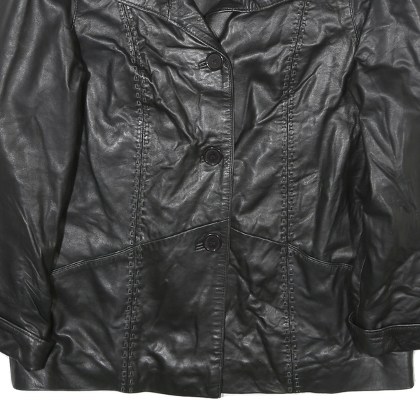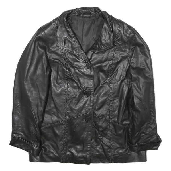 Womens Black Leather Button Jacket L Plain Classic Stylish Comfortable