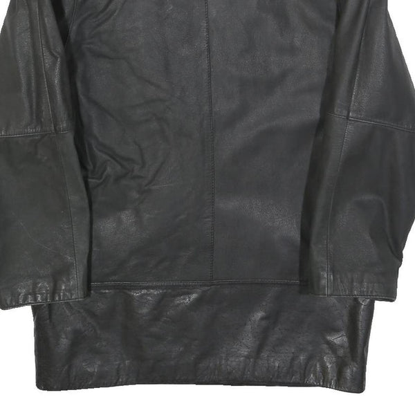 With no visible brand, this jacket aligns well with versatile leather outerwear styles, ideal for adding sophistication to everyday looks. Its durable leather material ensures longevity with proper care while maintaining an edgy yet classic appearance.