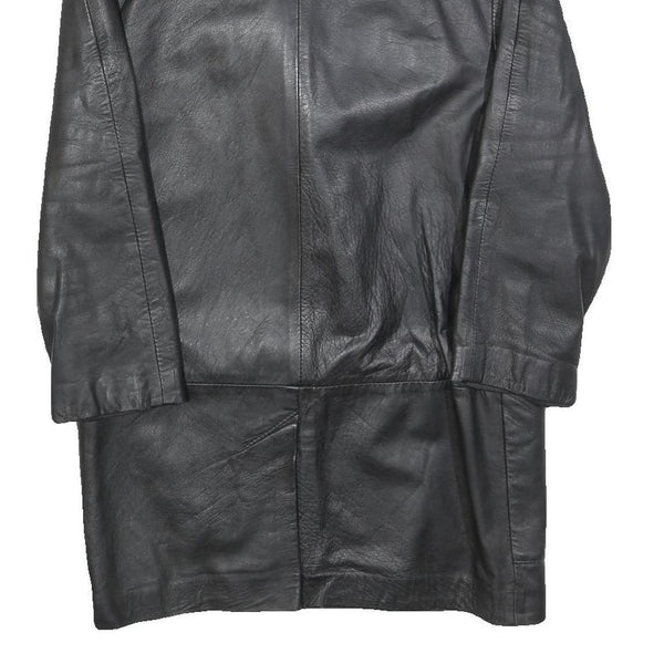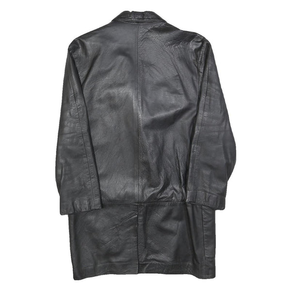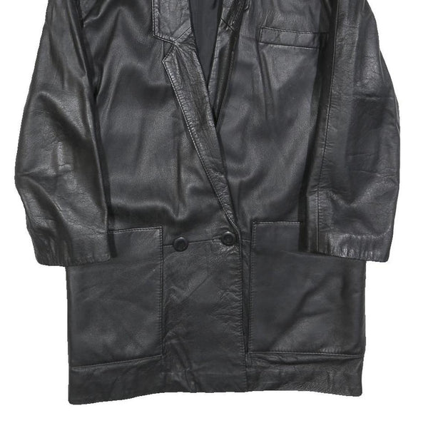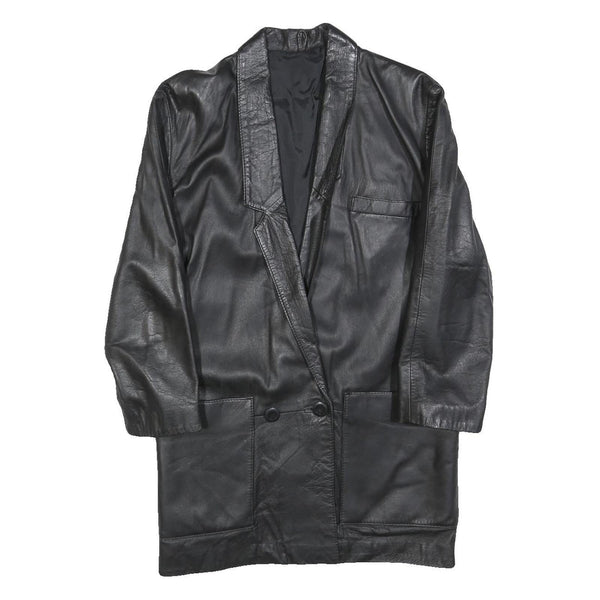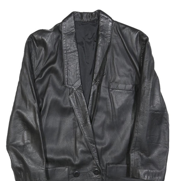 Womens Black Leather Button Jacket S Woven Classic Plain Stylish Comfort
