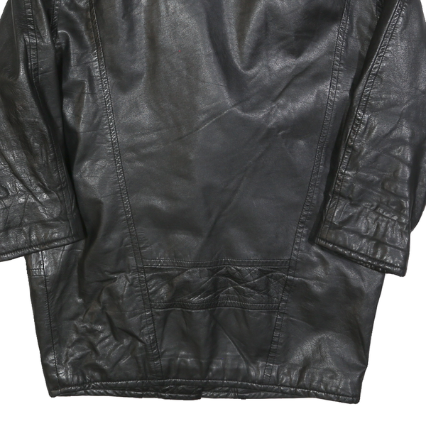 Womens Black Leather Jacket S Button Closure Long Sleeve Classic Fit Plain