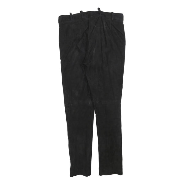 The leather fabric is smooth to the touch and likely offers durability and longevity with proper care. The length and fit correspond to a W30 L28 sizing, fitting comfortably to a slim profile. These pants are a timeless addition to a wardrobe that appreciates quality materials and clean design.