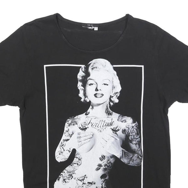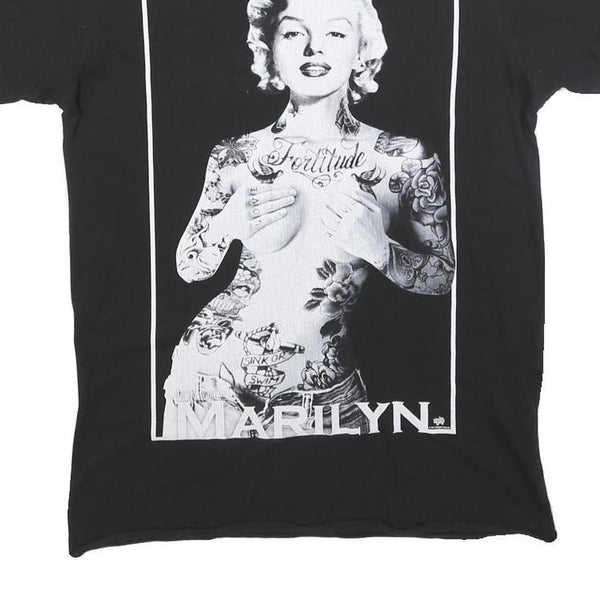 Womens Black Marilyn Graphic T-Shirt M Short Sleeve Crew Neck Tattoo Print