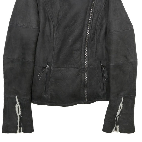 Womens Black Shearling Jacket M Zip Closure Plain Stylish Warm Winter Outerwear