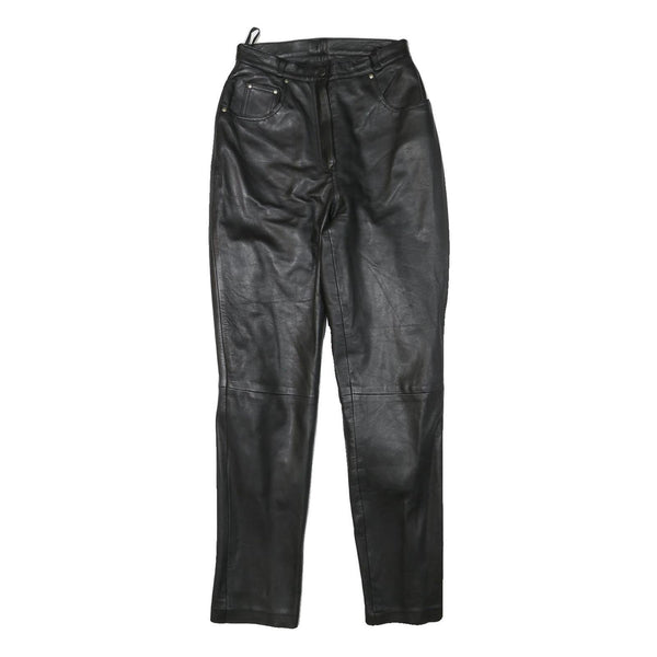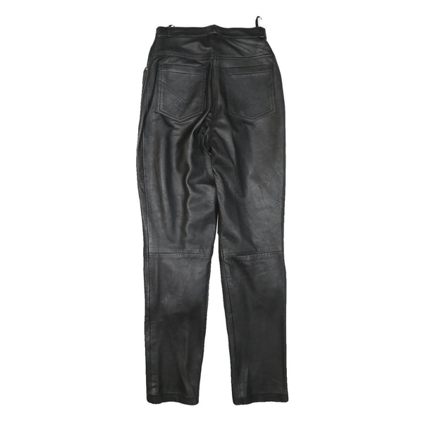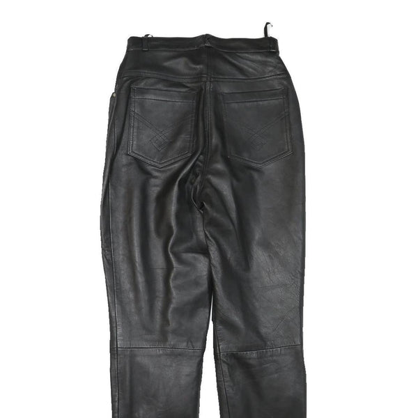 Womens Black Slim Leather Trousers Zip W25 L30 Stylish Fitted Pants