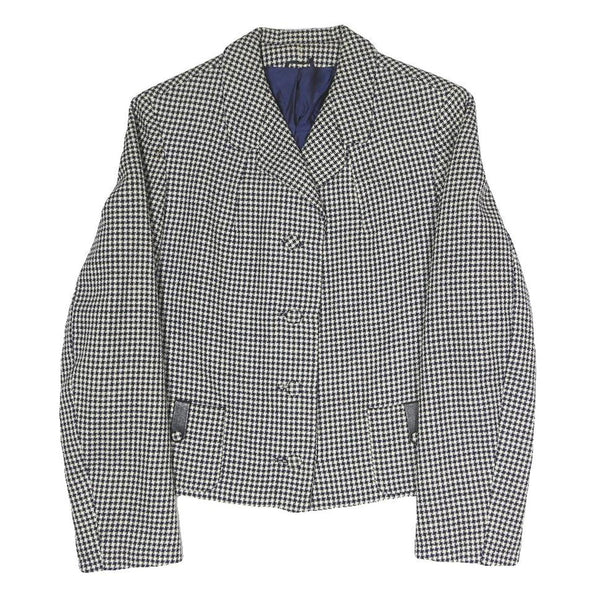 Womens Black & White Houndstooth Button Jacket S Polyester Blend Classic