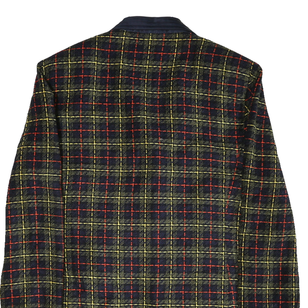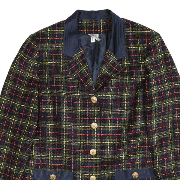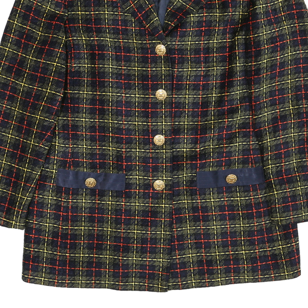 Womens Black & Yellow Check Jacket L Acetate Button Closure Classic Fit Stylish