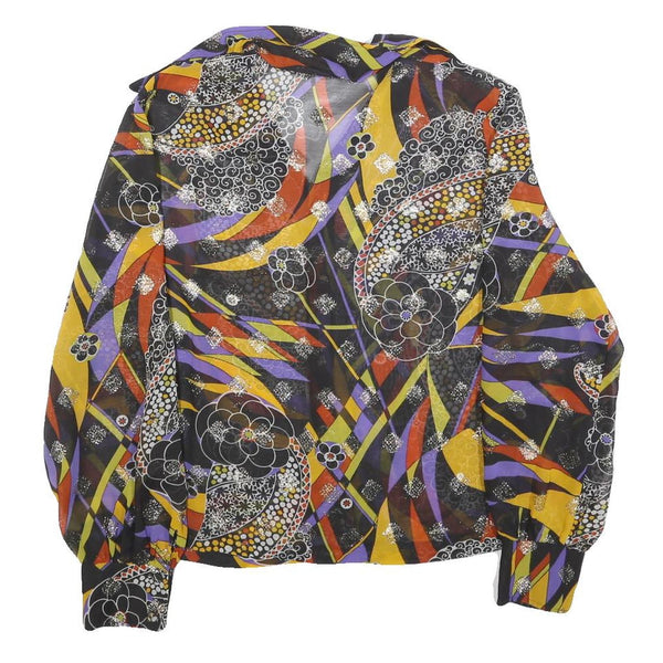 Womens Black Yellow Purple Printed Basic Long Sleeve Collared Shirt M Stylish
