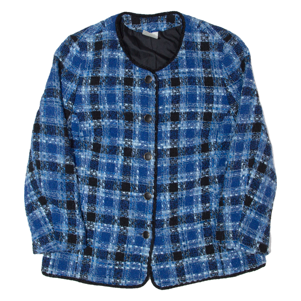 Womens Blazer Jacket Blue Wool 90s Check UK 16