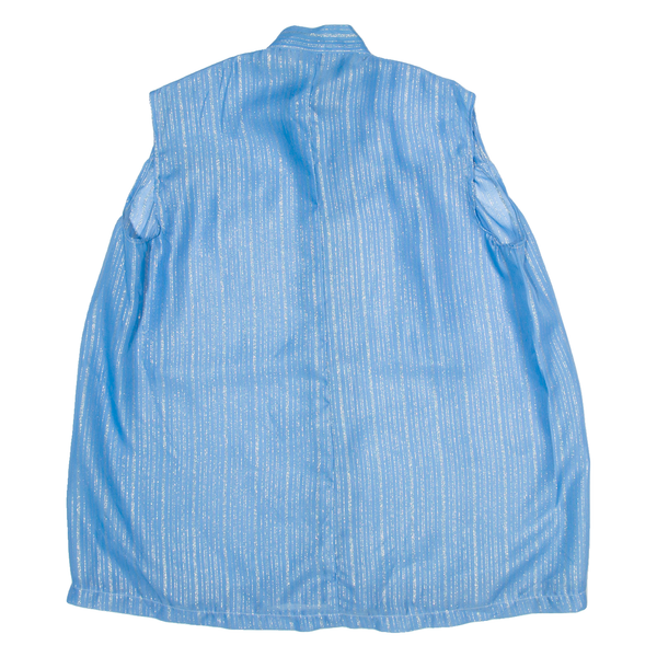 Womens Blouse Blue Button Neck Sleeveless Striped XL
