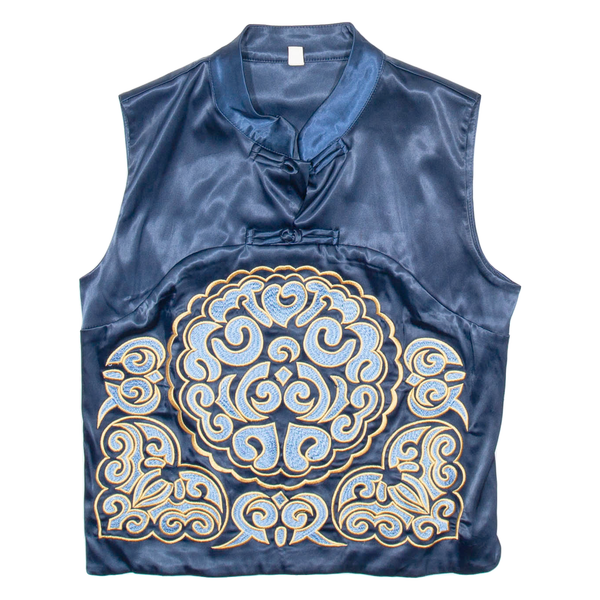 Womens Blouse Blue V-Neck Sleeveless Silk Crazy Pattern S