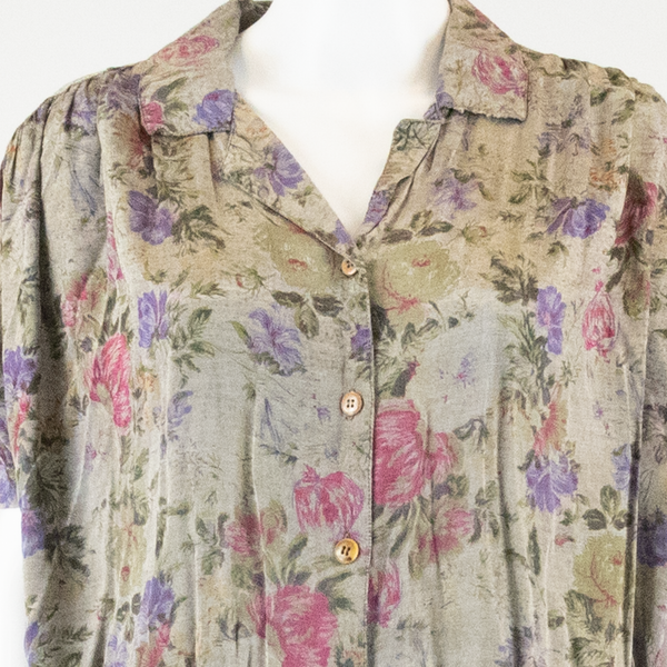 Womens Blouse Grey Collared Floral XL