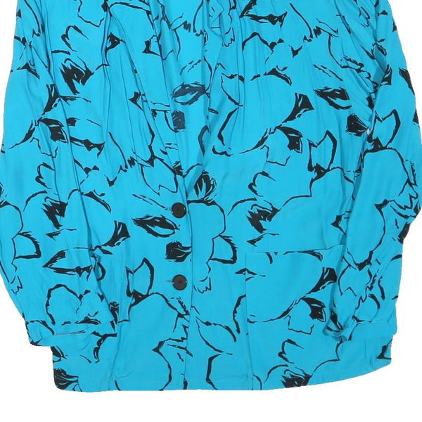Womens Blue & Black Printed Shirt Long Sleeve Collared Polyester Blend L Stylish