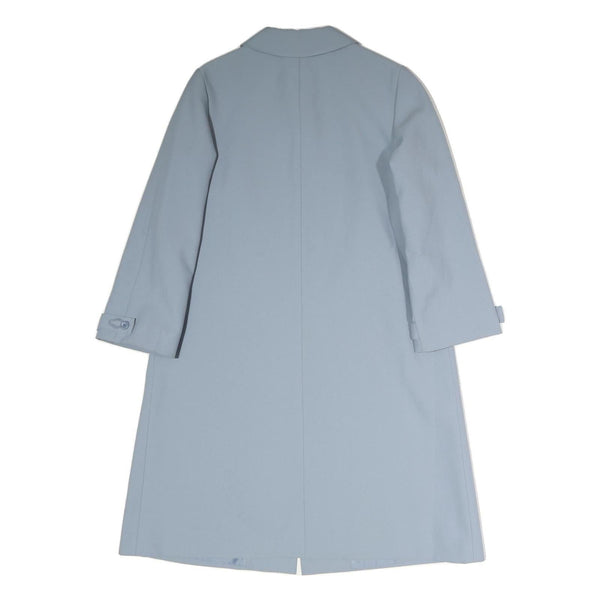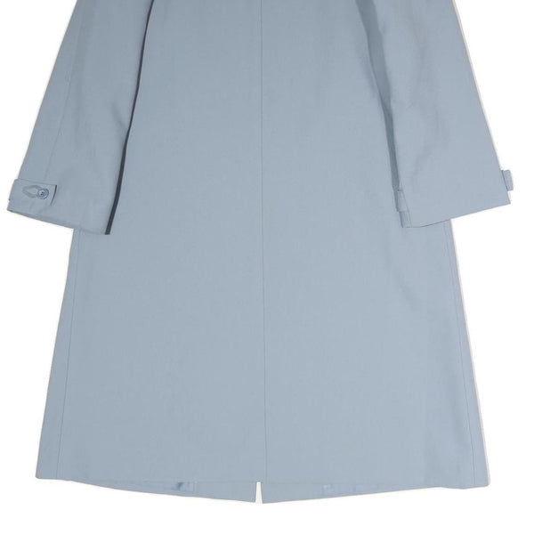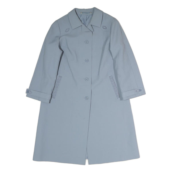 This womens jacket features a serene blue colour with a clean, classic design. It has a button closure down the front and a simple collar, offering a timeless aesthetic. The jacket is fully lined in a matching blue fabric, contributing to a smooth and comfortable wear.