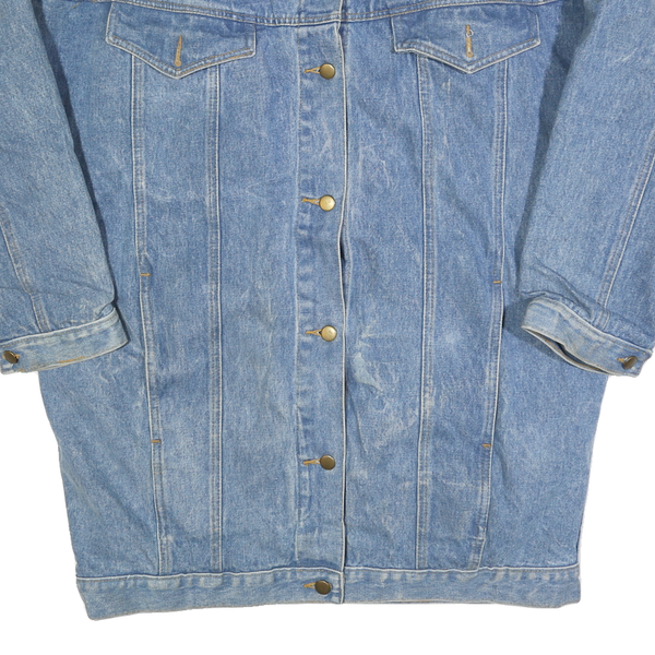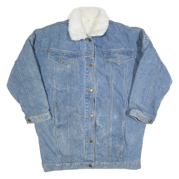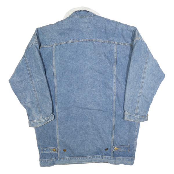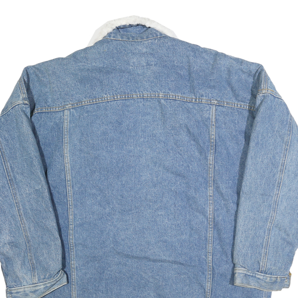 Womens Blue Denim Button Cotton Jacket M Plain Sherpa Collar Casual Winter