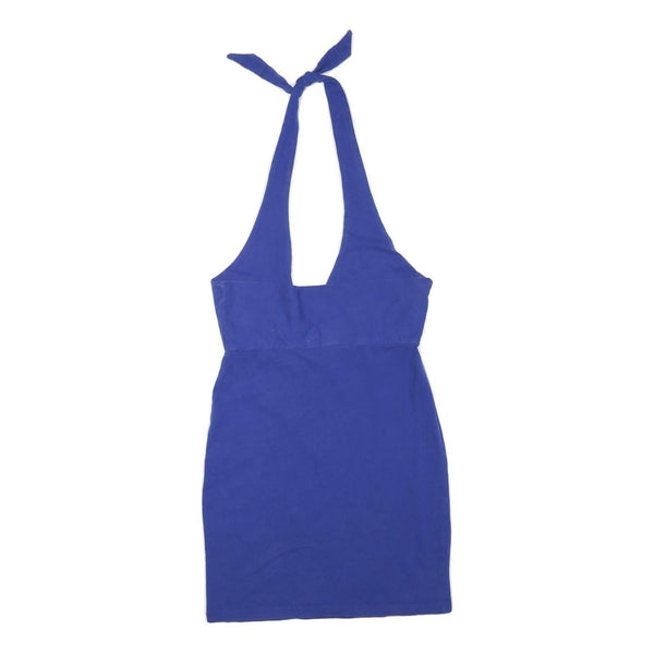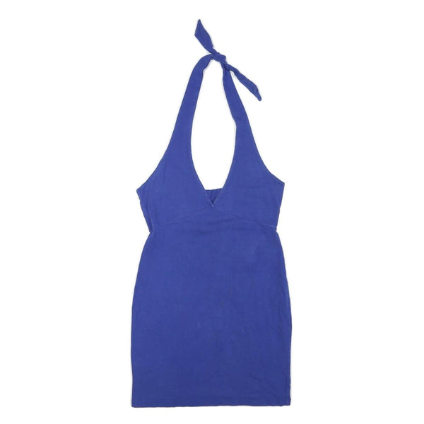 Womens Blue Halter Mini Dress Cotton Blend Sleeveless Summer Casual L