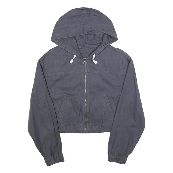 Womens Blue Hooded Jacket S Cotton Casual Zip-Up Plain Light Outerwear
