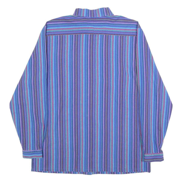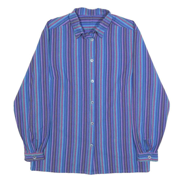 Womens Blue & Purple Striped Cotton Blend Shirt M Long Sleeve Button Up Relaxed