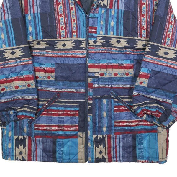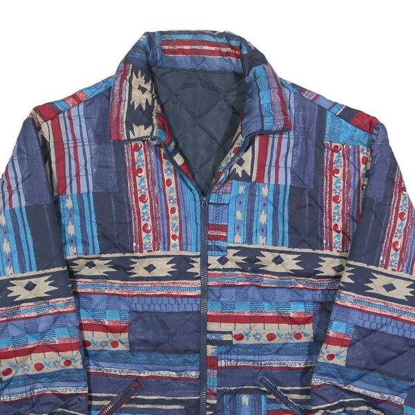 Womens Blue Red Patterned Classic Polyester Blend Quilted Jacket M Zip