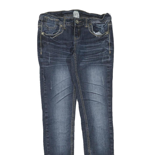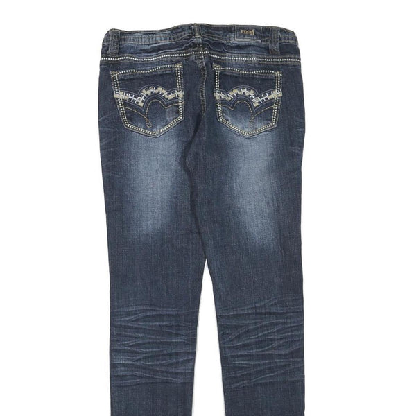 Womens Blue Regular Fit Skinny Denim Jeans Cotton Blend Zip W30 L32 Embellished