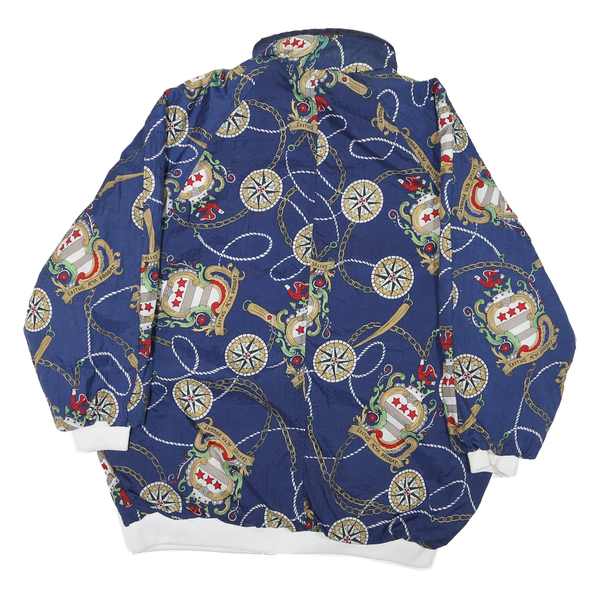 Womens Blue Synthetic Reversible Jacket XL Button Lightweight Nautical Print