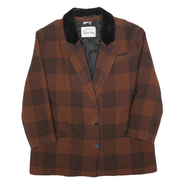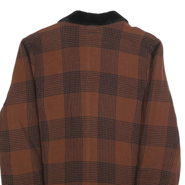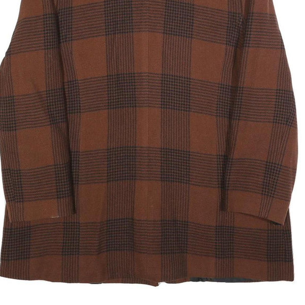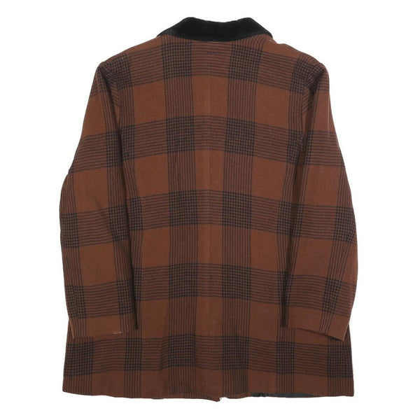 Home Womens Brown Check Button Jacket L Plaid Classic Retro Stylish Outerwear