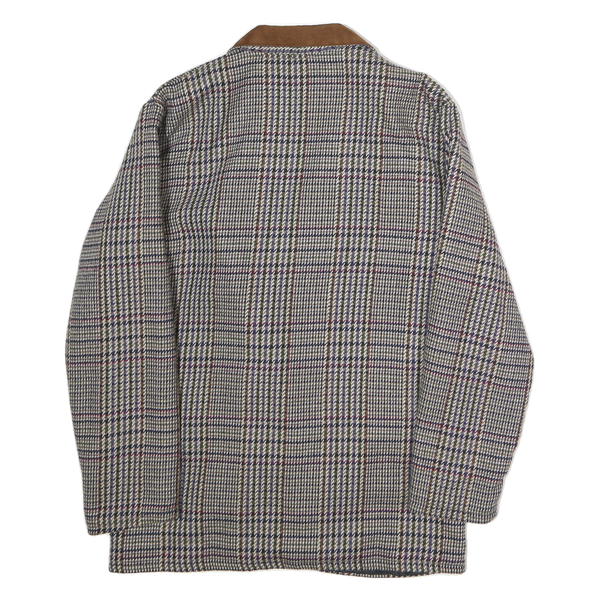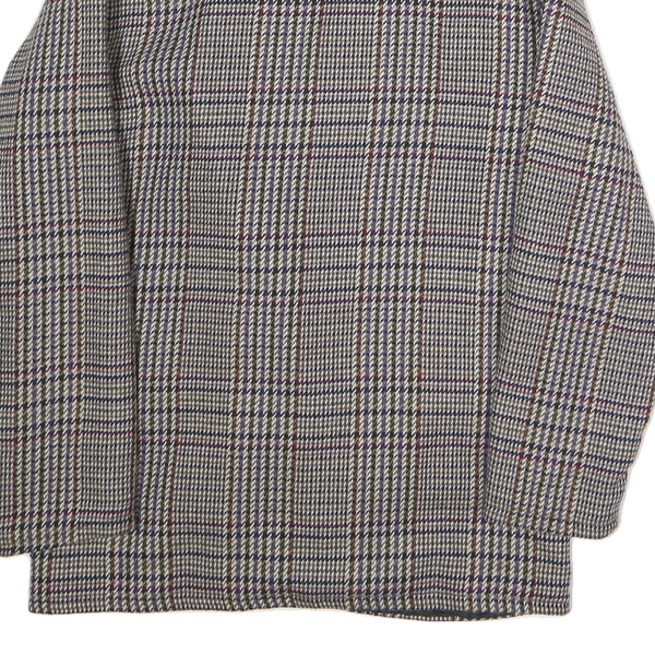Womens Brown Check Wool Jacket L Button Closure Classic Fit Long Sleeve