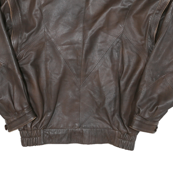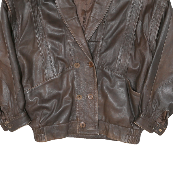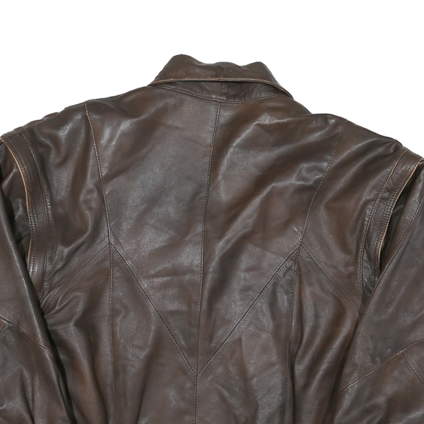 Womens brown leather button jacket l woven relaxed fit stylish casual outerwear