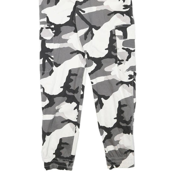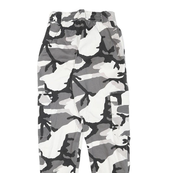 Womens Camo Print Cotton Blend Relaxed Cargo Trousers W22 L26 Elastic Cuffs
