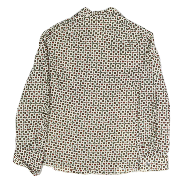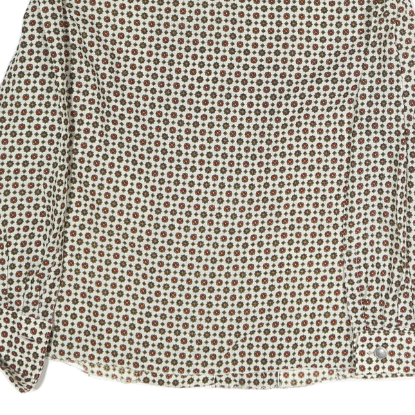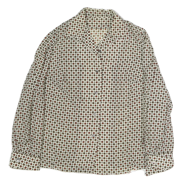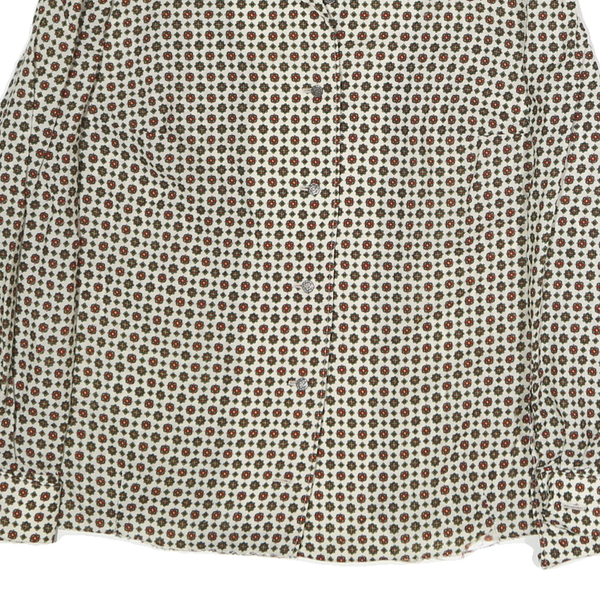 Womens Cream Brown Printed Button Down Long Sleeve Shirt M