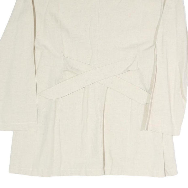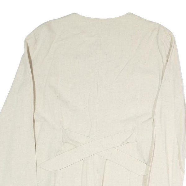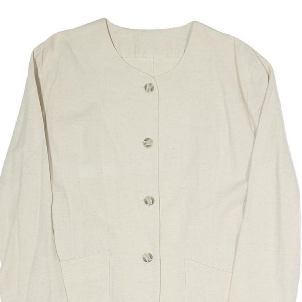 Womens Cream Cotton Blend Button Jacket L Plain Classic Stylish Lightweight