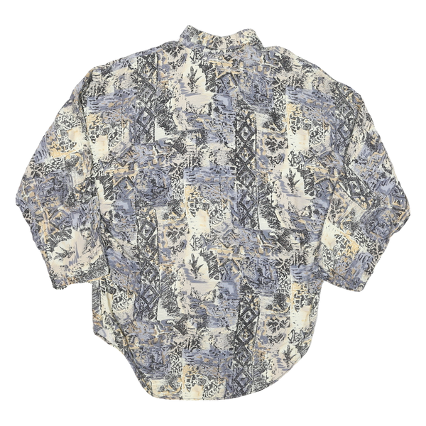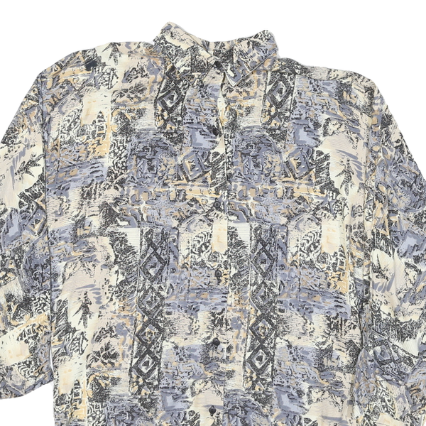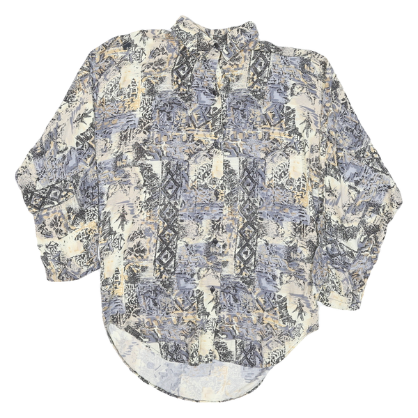 Womens Cream & Grey Abstract Pattern Cotton Blend Shirt L Oversized Casual