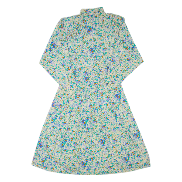Womens Day Dress Beige Floral Long Sleeve Midi M