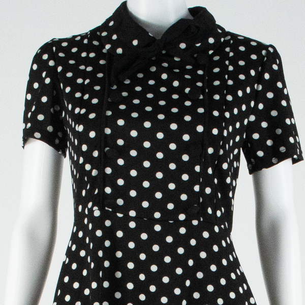 Womens Day Dress Black Spotted Short Sleeve Midi M