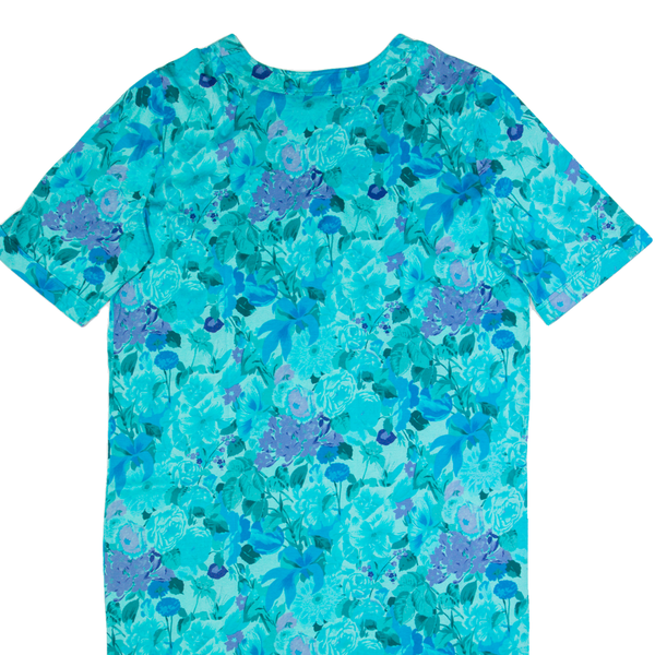 Womens Day Dress Blue 90s Floral Short Sleeve Midi L