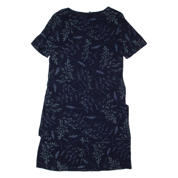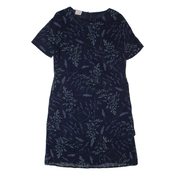 Womens Day Dress Blue 90s Floral Short Sleeve Midi M