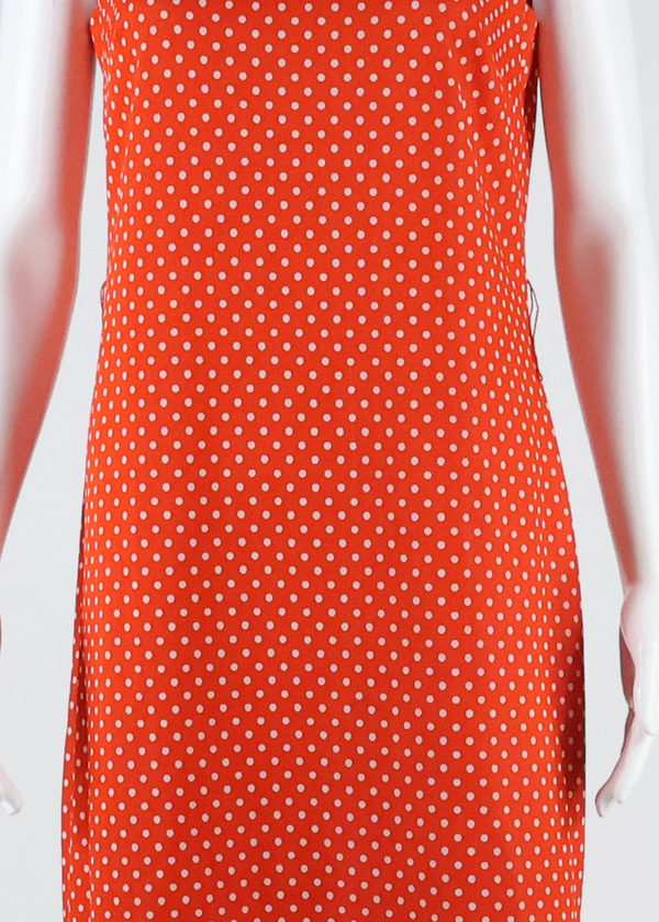Womens Day Dress Orange Polka Dot Sleeveless Long L