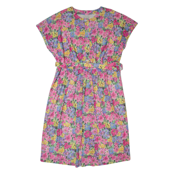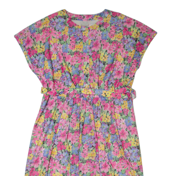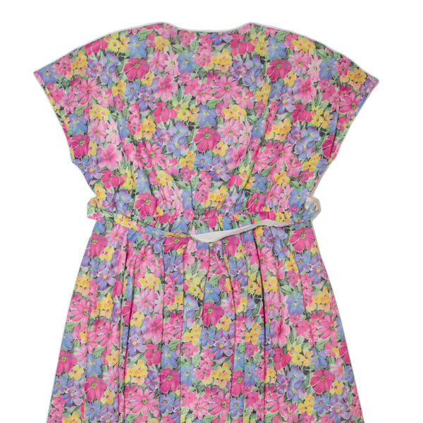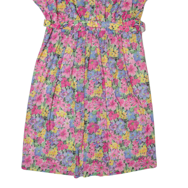 Womens Day Dress Pink 90s Floral Short Sleeve Midi L