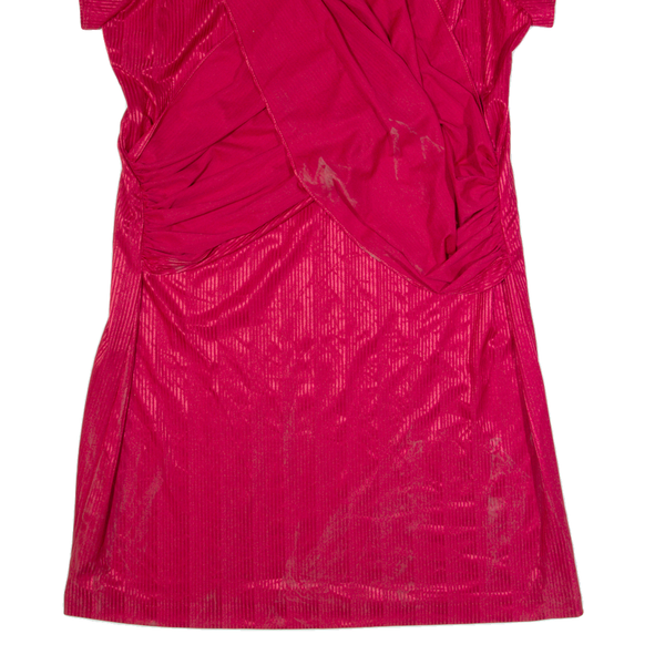 Womens Day Dress Red 90s Striped Short Sleeve Knee Length L