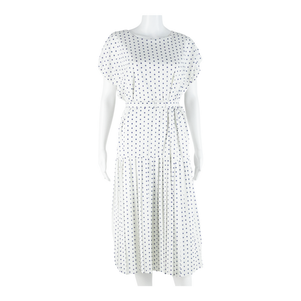 Womens Day Dress White Spotted Short Sleeve Midi L