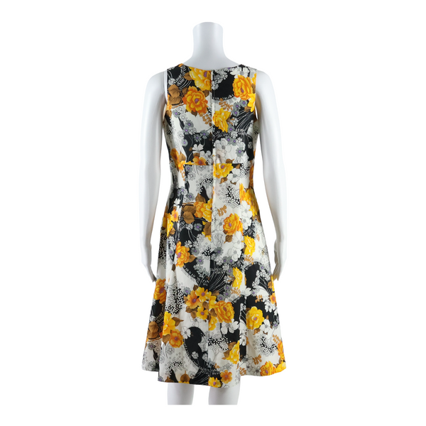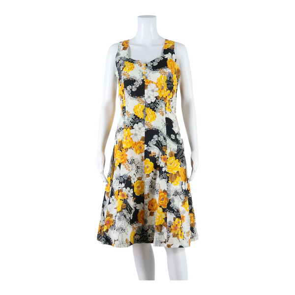 Womens Fit & Flare Dress Yellow Floral Sleeveless Midi M